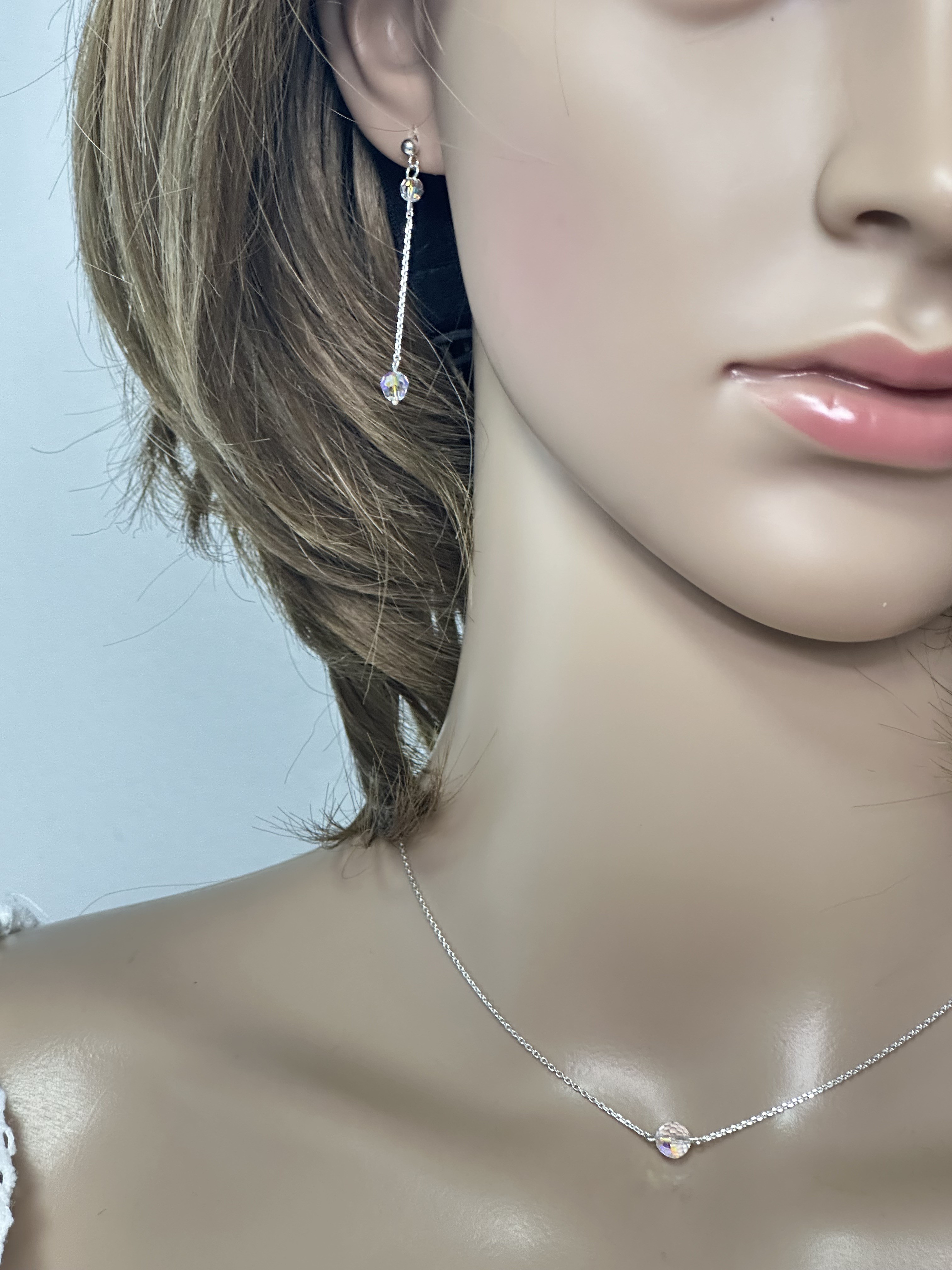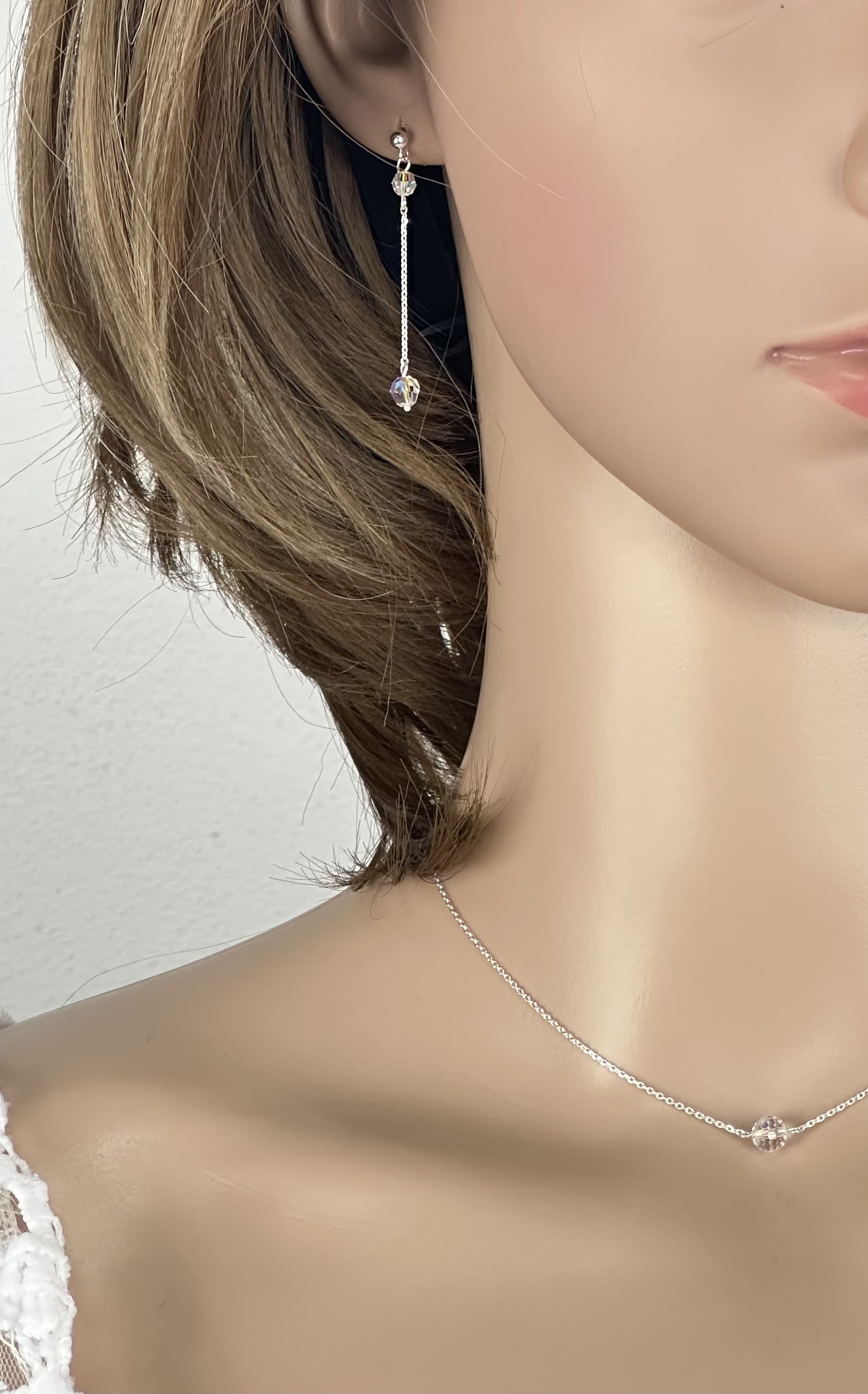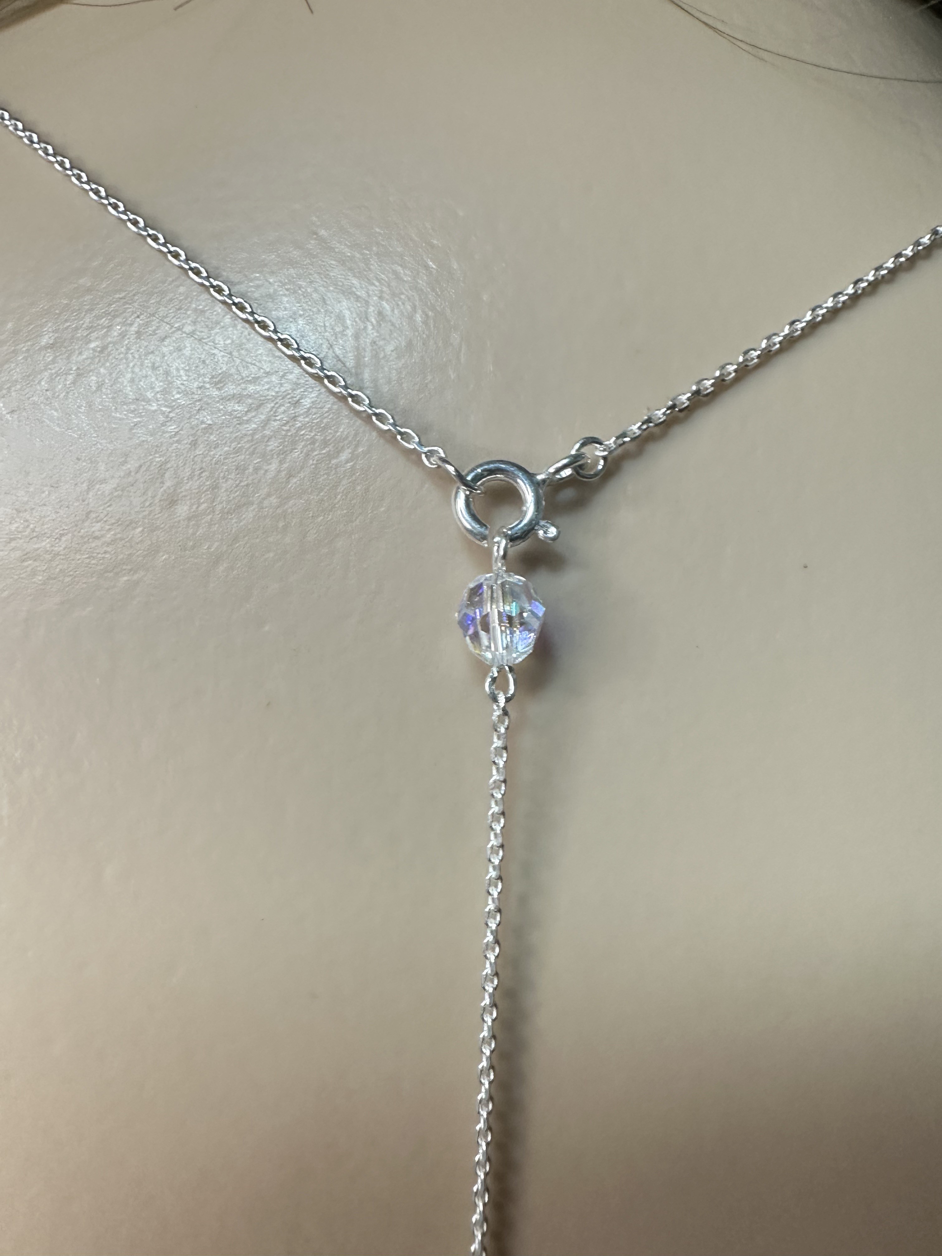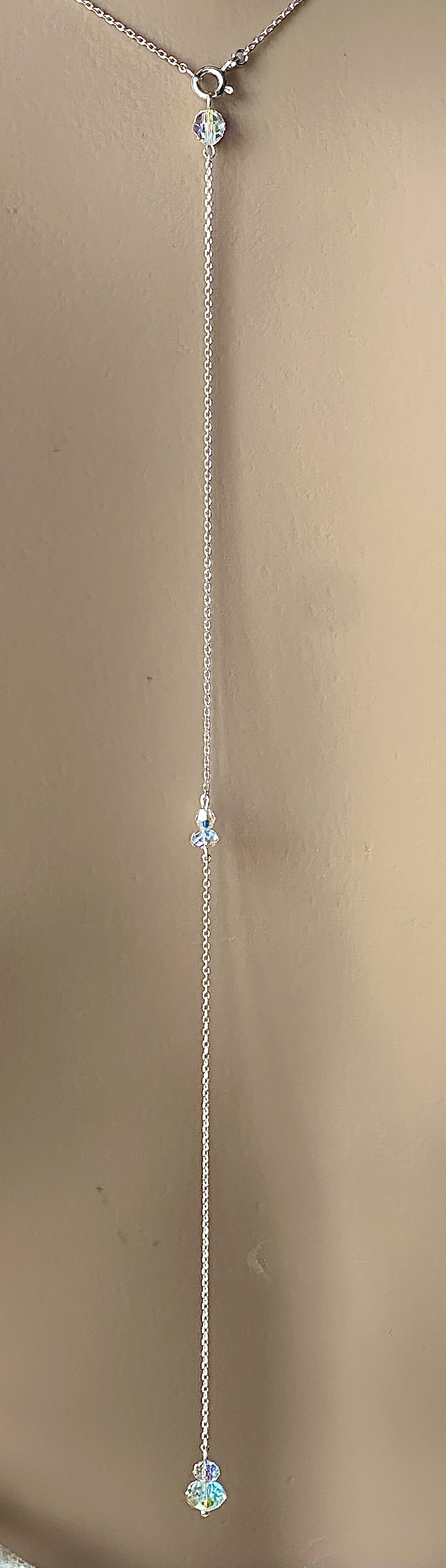 Le collier et son bijou de dos amovible ont été réalisés avec une chaîne fine en argent 925 et des perles en cristal à reflets de 3, 4, 5 et 6mm.