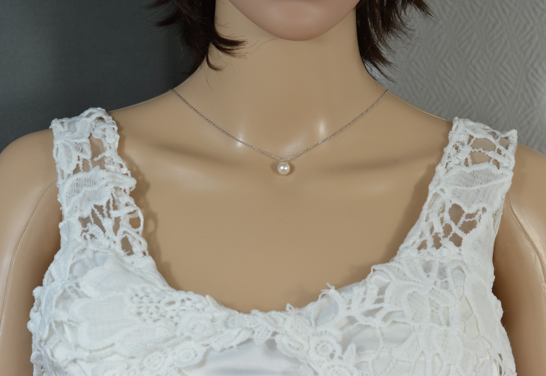J'ai réalisé ce collier de dos avec son pendentif double, avec une chaine fine en acier inoxydable , des perles blanches nacrées en forme de gouttes et une ronde de 8mm.