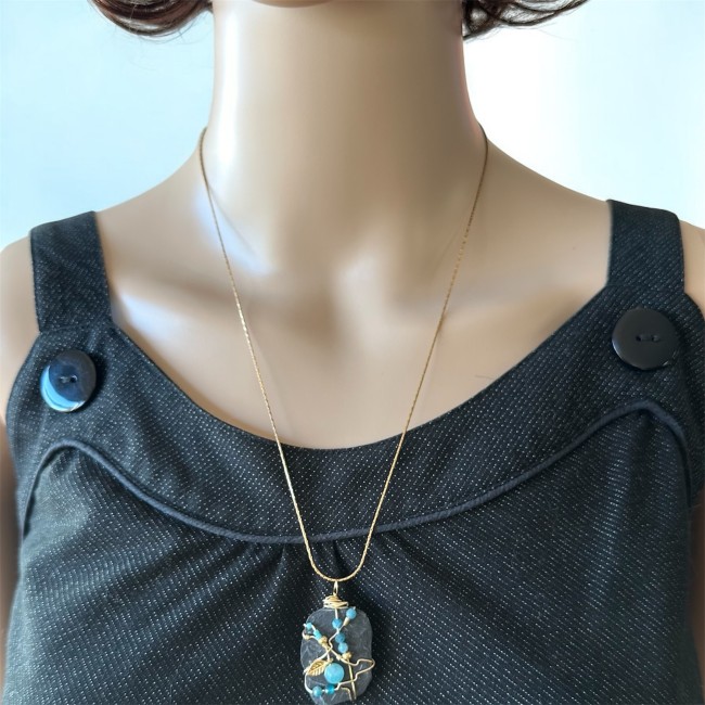Je vous conseille de conserver ce bijou dans un endroit sec (pochette, boite...) et d'éviter le contact avec l'eau, le parfum, les crèmes, les huiles corporelles, pour une meilleure longévité et ainsi garder l'éclat et le brillant de ce collier et des perles en pierre naturelle.