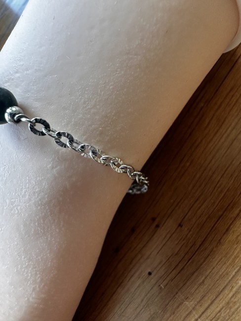 Les anneaux, le fermoir, la chaîne de rallonge sont eux aussi en acier inoxydable.