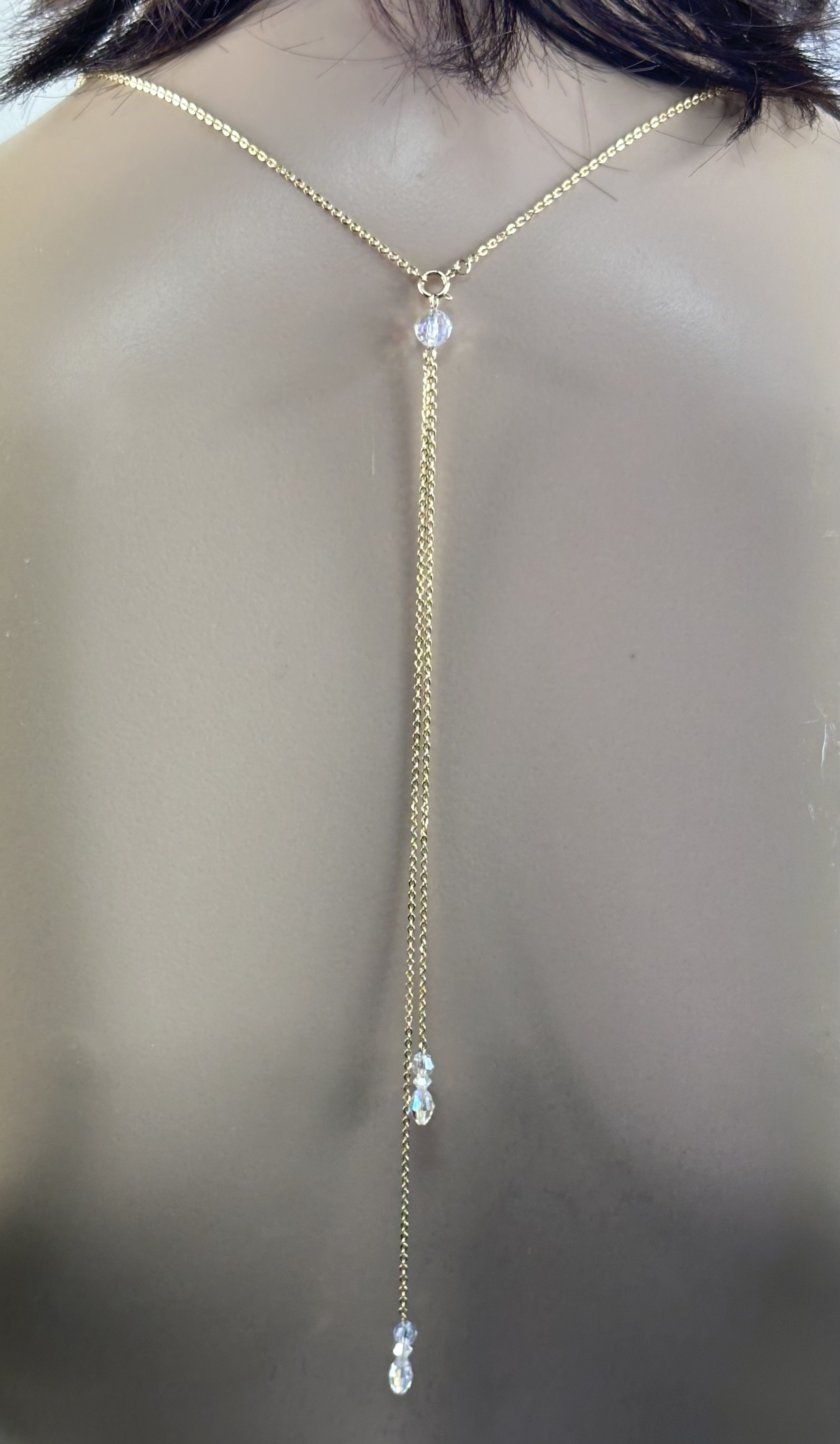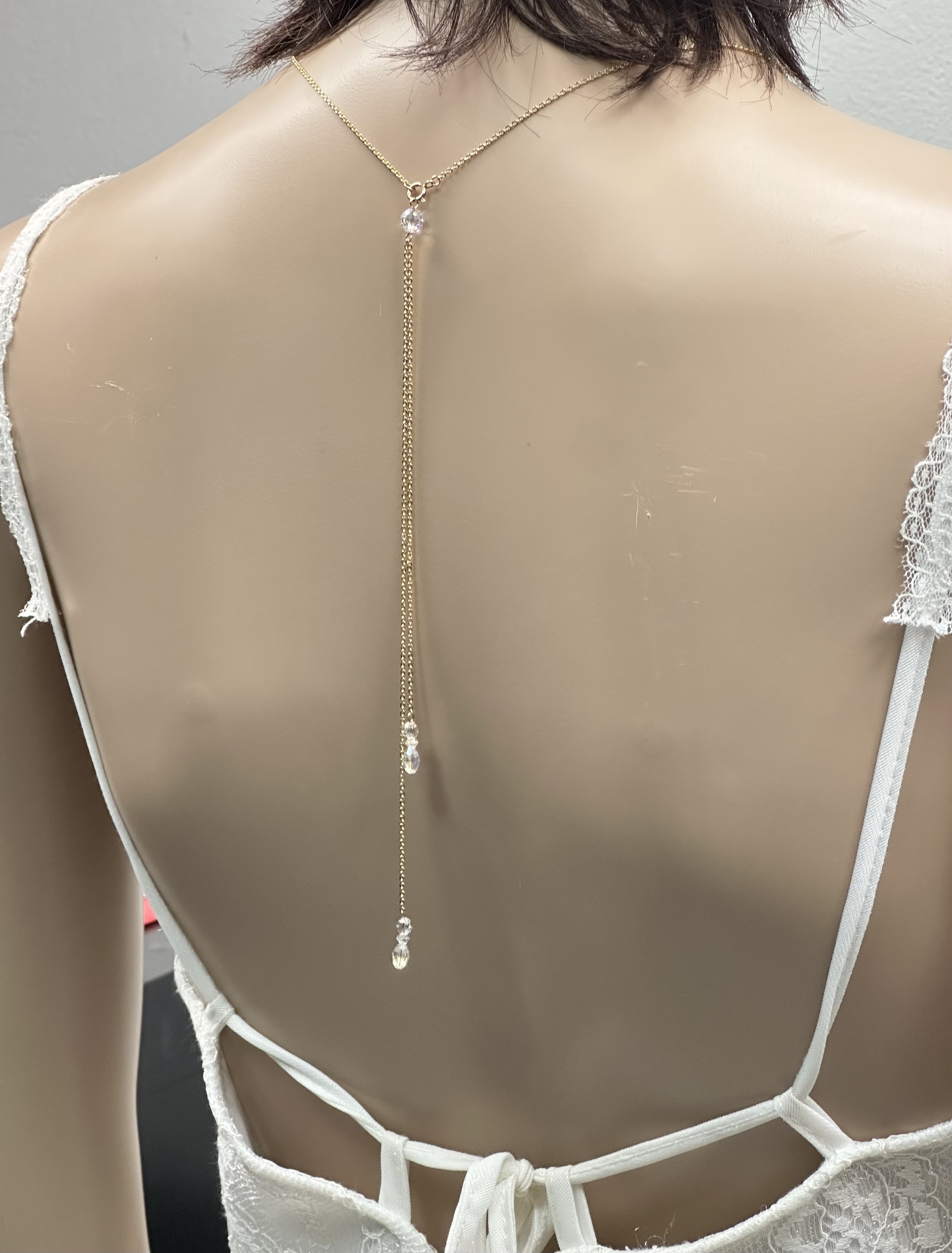 Une fois la commande passée je peux vous expliquer comment prendre vos mesures et ainsi modifier le bijou afin qu'il soit parfaitement adapté à votre décolleté de dos.