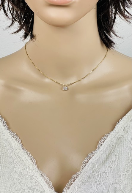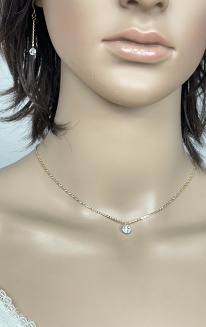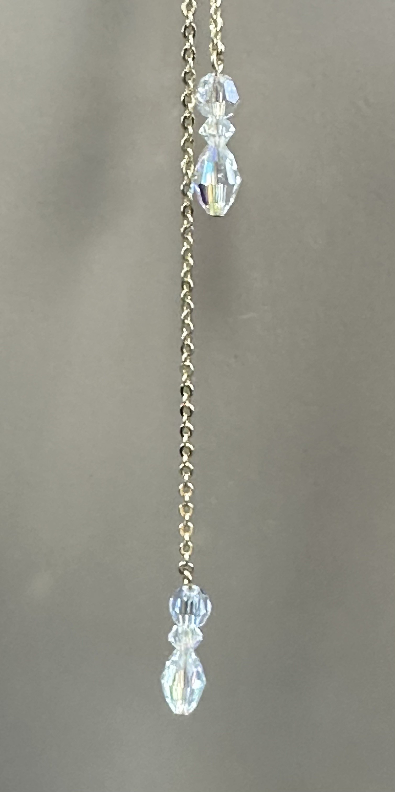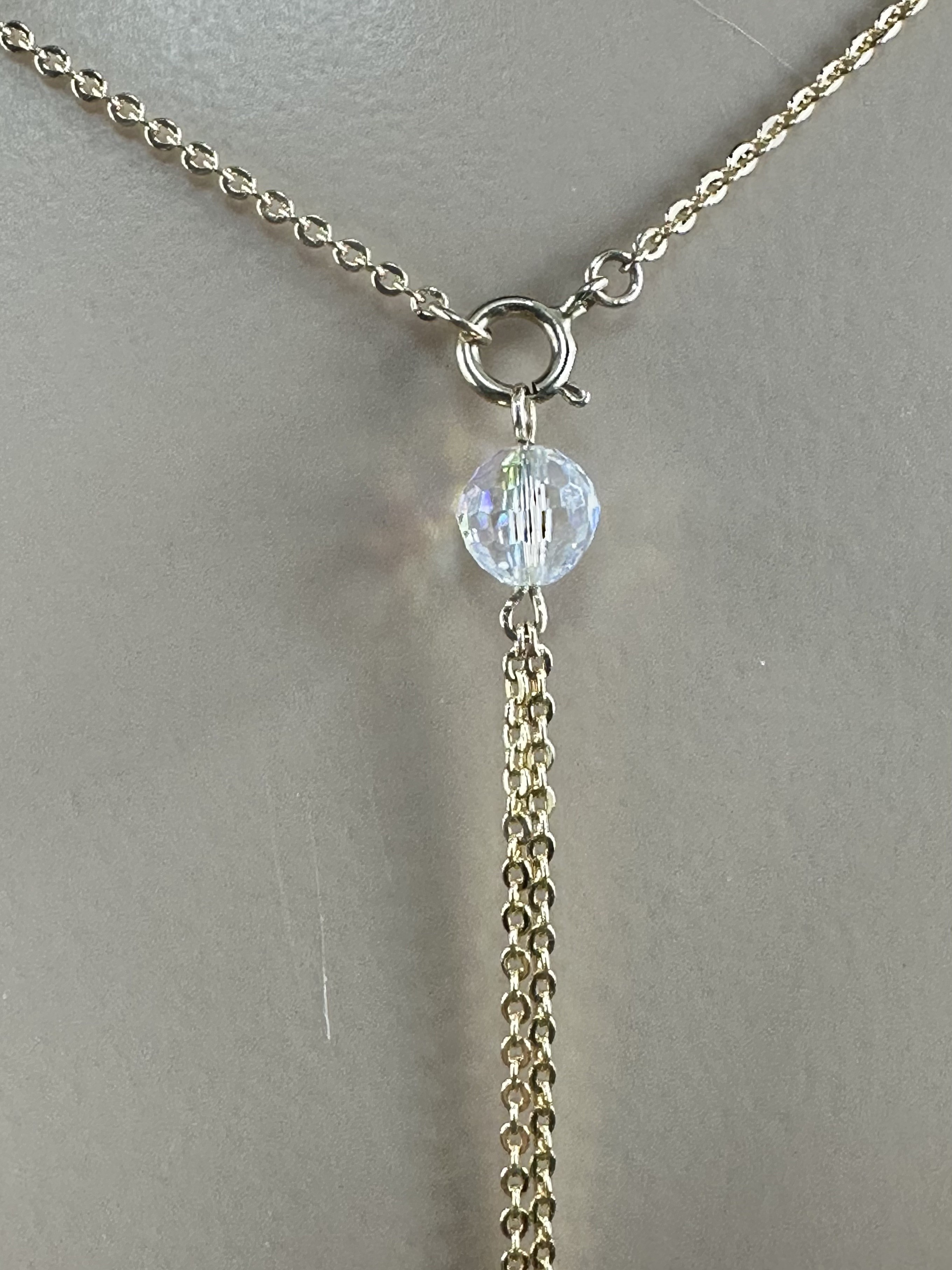 Collier avec son bijou de dos en plaqué or et perles en cristal transparentes à reflets rondes et allongées.