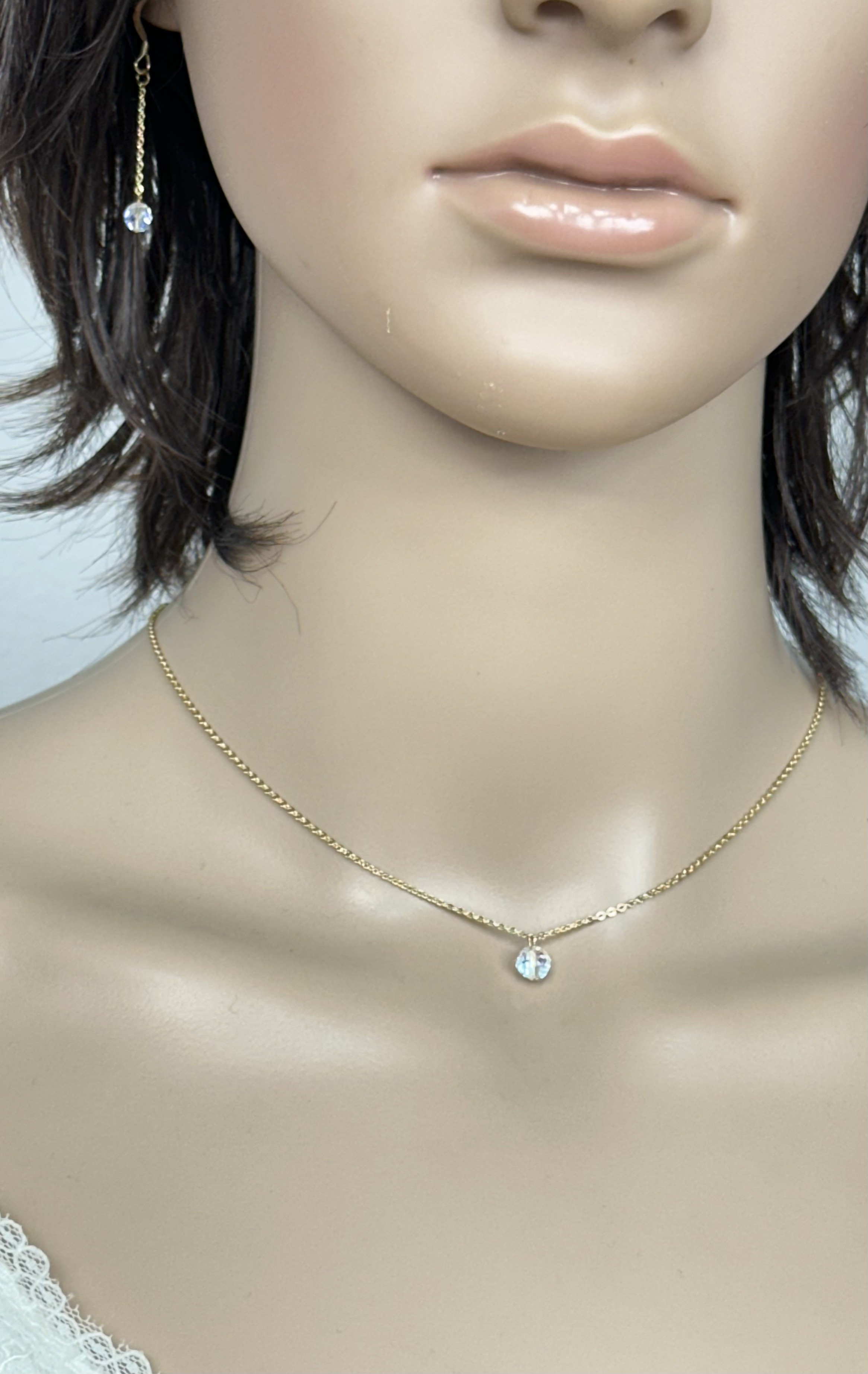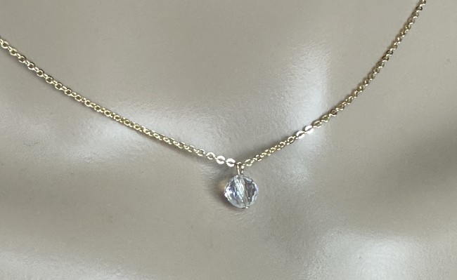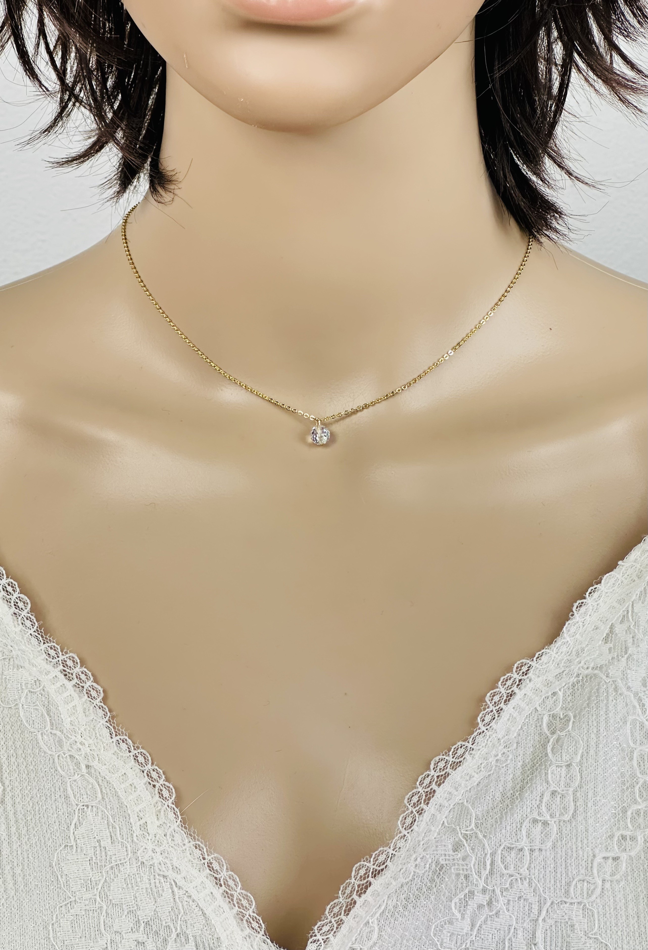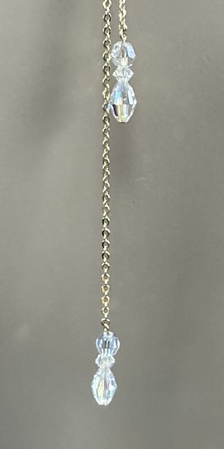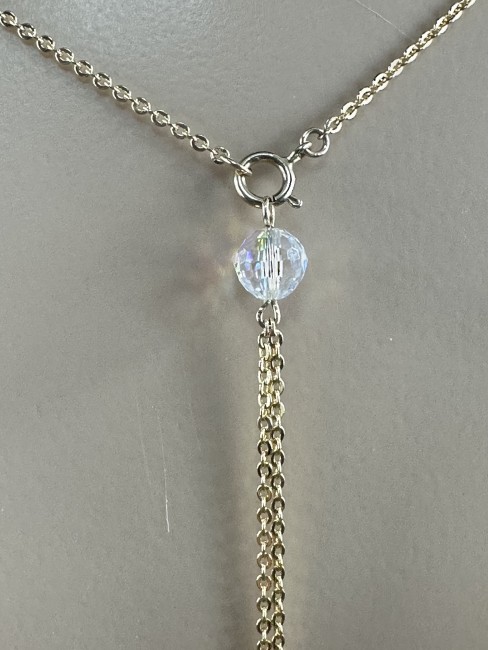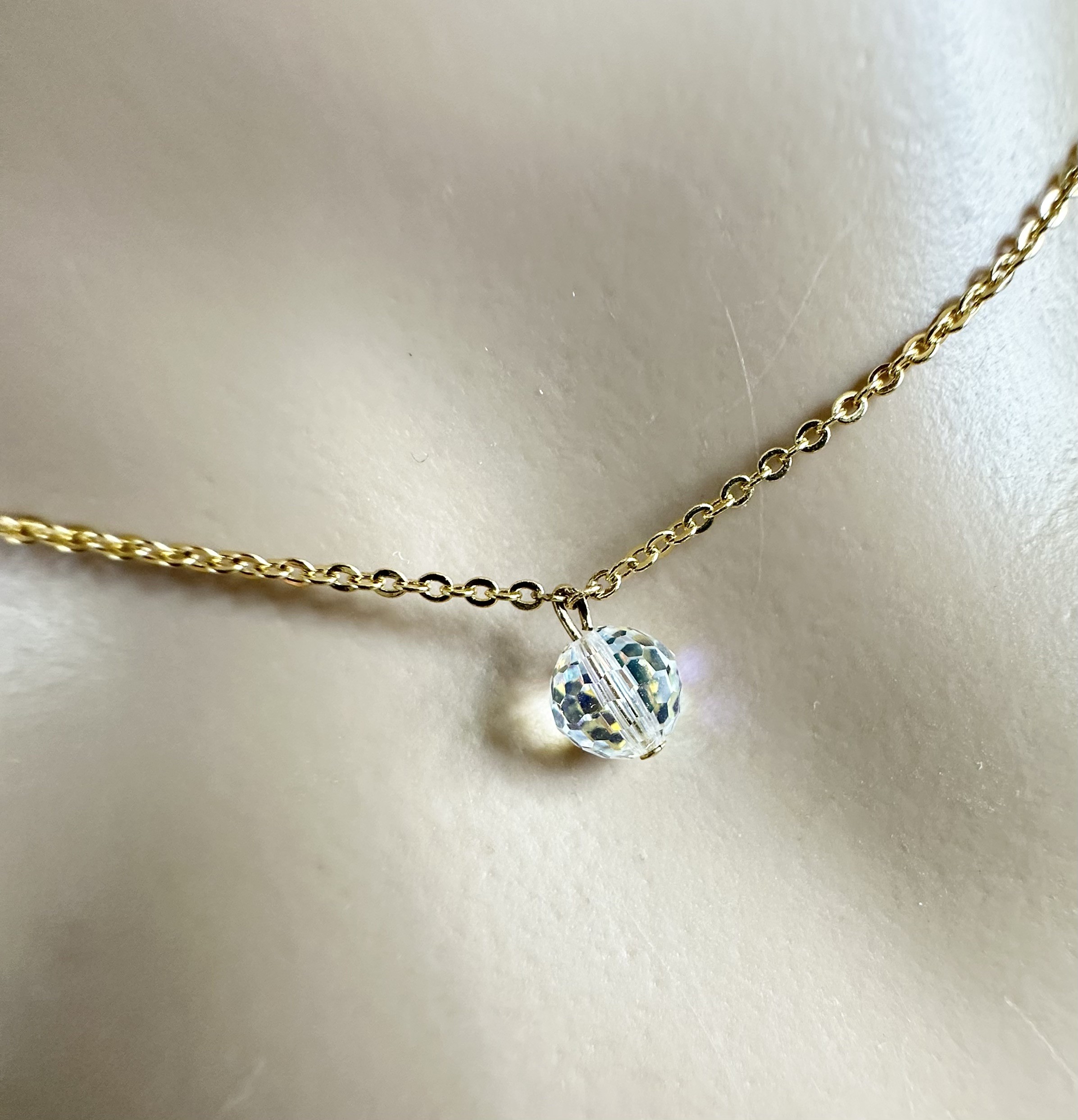 Le collier mesure 42cm, il porte devant une perle en cristal transparentes à reflets et à facettes de 6mm.