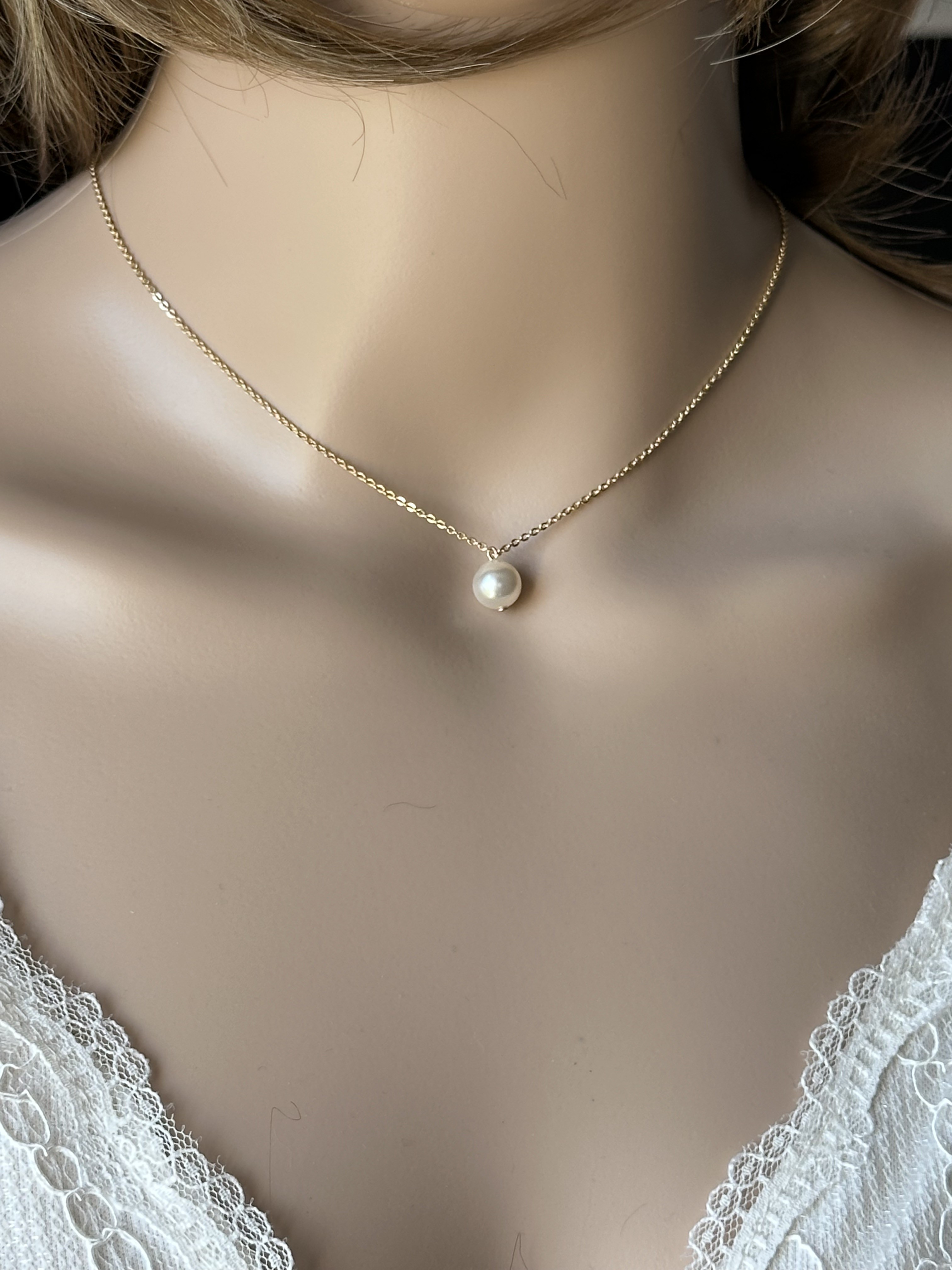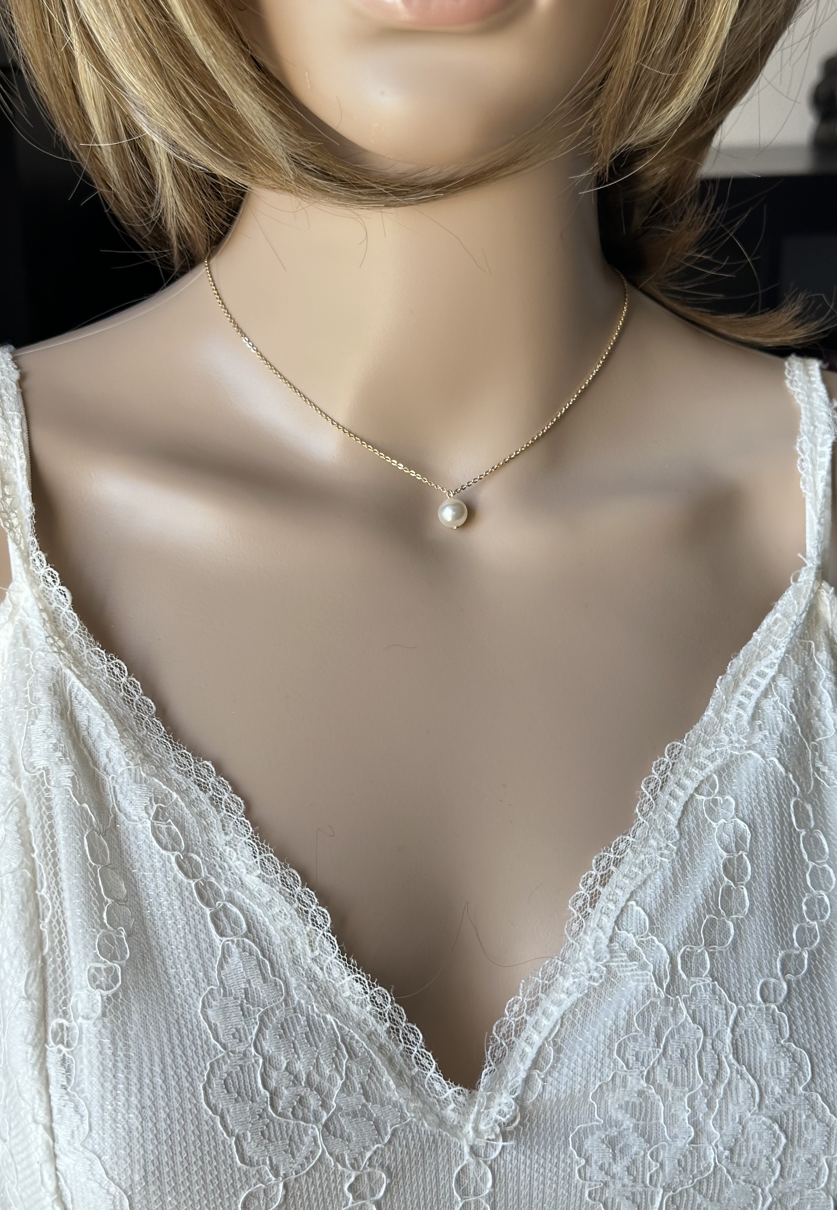 et des perles en cristal blanches nacrées de 6mm (pour le pendentif de dos) et une de 8mm (pour le devant du collier).
