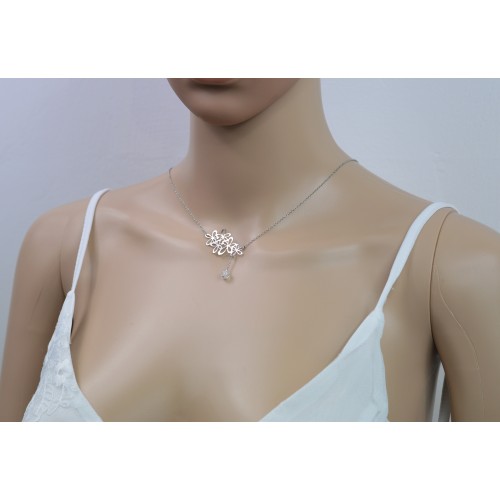 Ce collier avec son bijou de dos ont été réalisés avec une chaîne fine en acier inoxydable et une estampe "grappe de fleurs" sur le devant du collier.