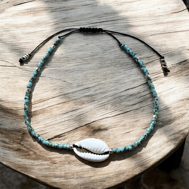Bracelet très fin réglable avec coquillage cauris et perles miyuki turquoisesBijoux Avec Coquillage Et Pierres Naturelles