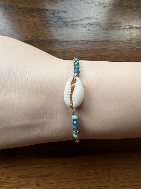 Bracelet doré avec coquillage et perles naturelles en apatiteBijoux Avec Coquillage Et Pierres Naturelles