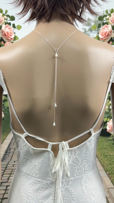 Bijou de dos en argent 925 avec perles blanches nacrées