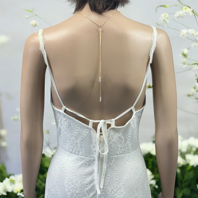 Bijou de dos en argent 925 avec perles gouttes blanches et perles en cristal